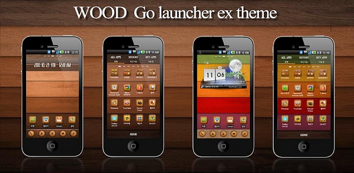 Overview: 4 wood main wallpapers / 4 app drawer wallpapers, 123 wood app icons, 2 dock bar image