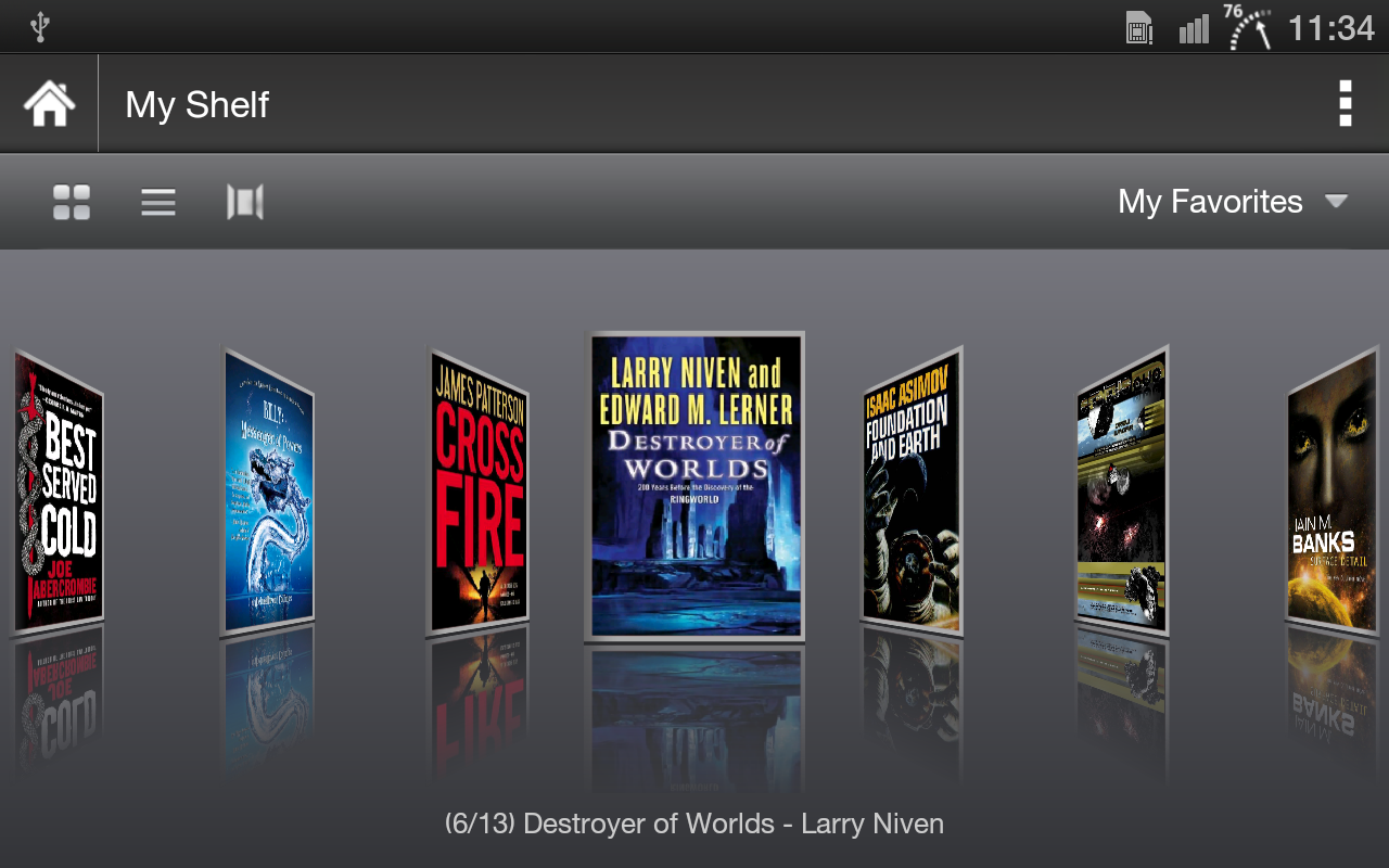 My Bookshelf design: Favorites, Downloads, Authors, Tags; self bookcover, search, import supported.