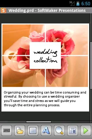 Overview: SoftMaker Presentations Mobile is the only presentation program for Android that lets you open, edit, and save all your PowerPoint files while preserving all formatting and content. It displays your presentations exactly like they look on your PC, even including animations and slide transitions.